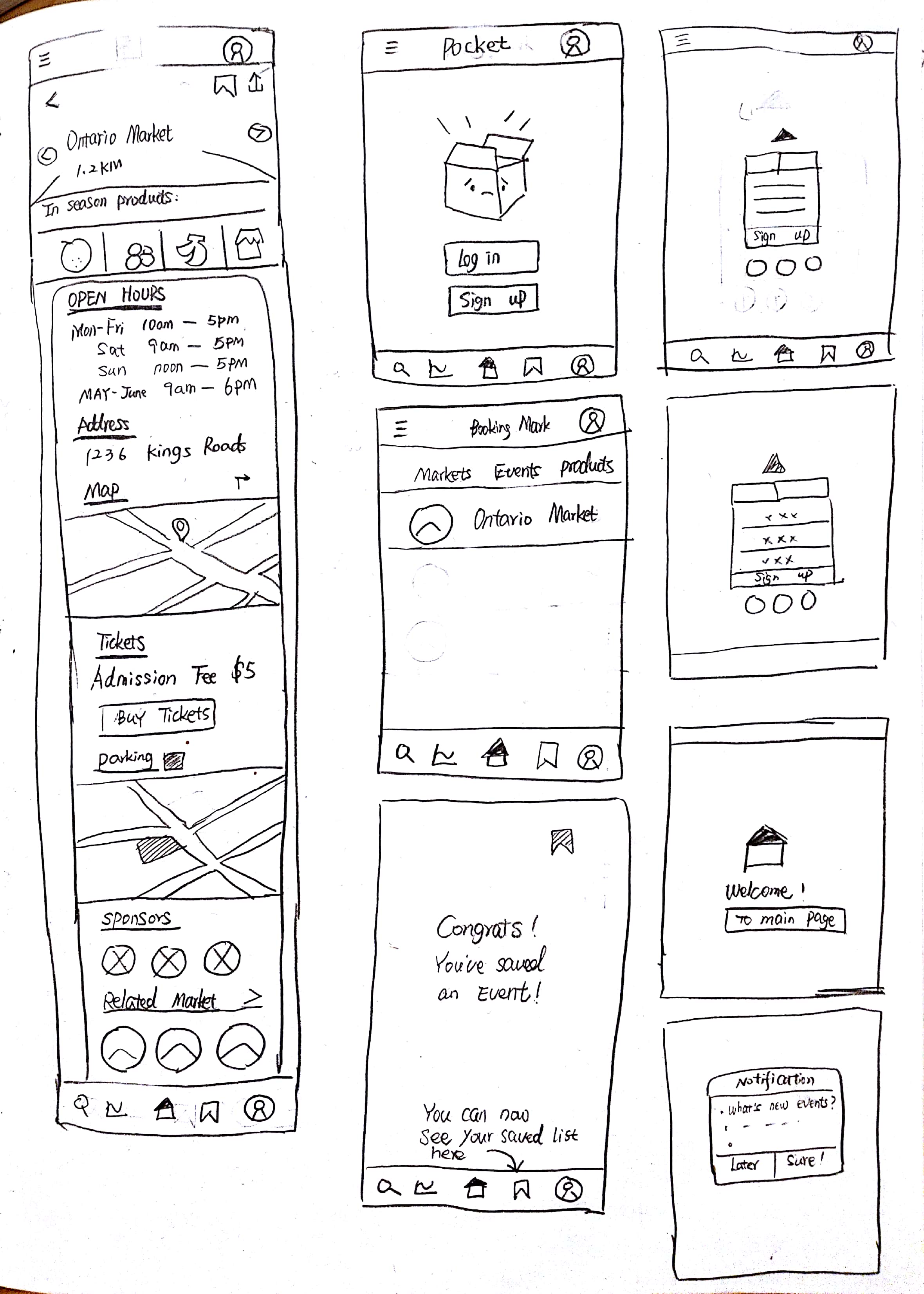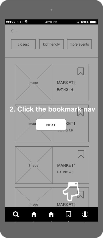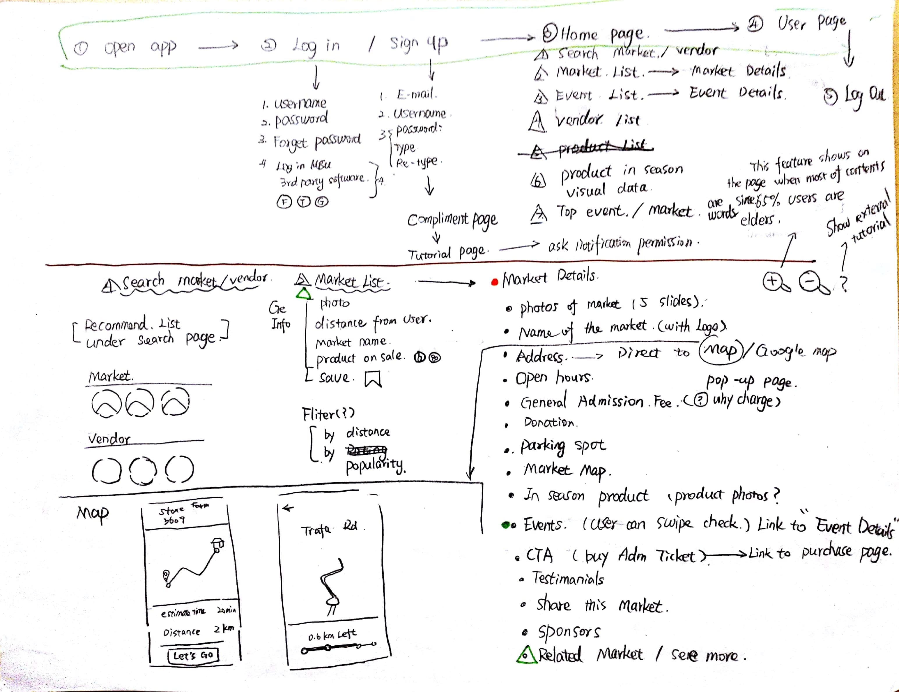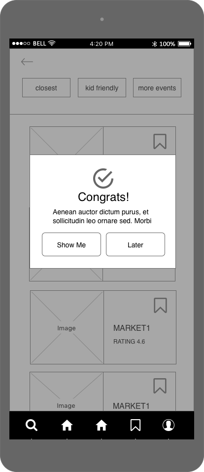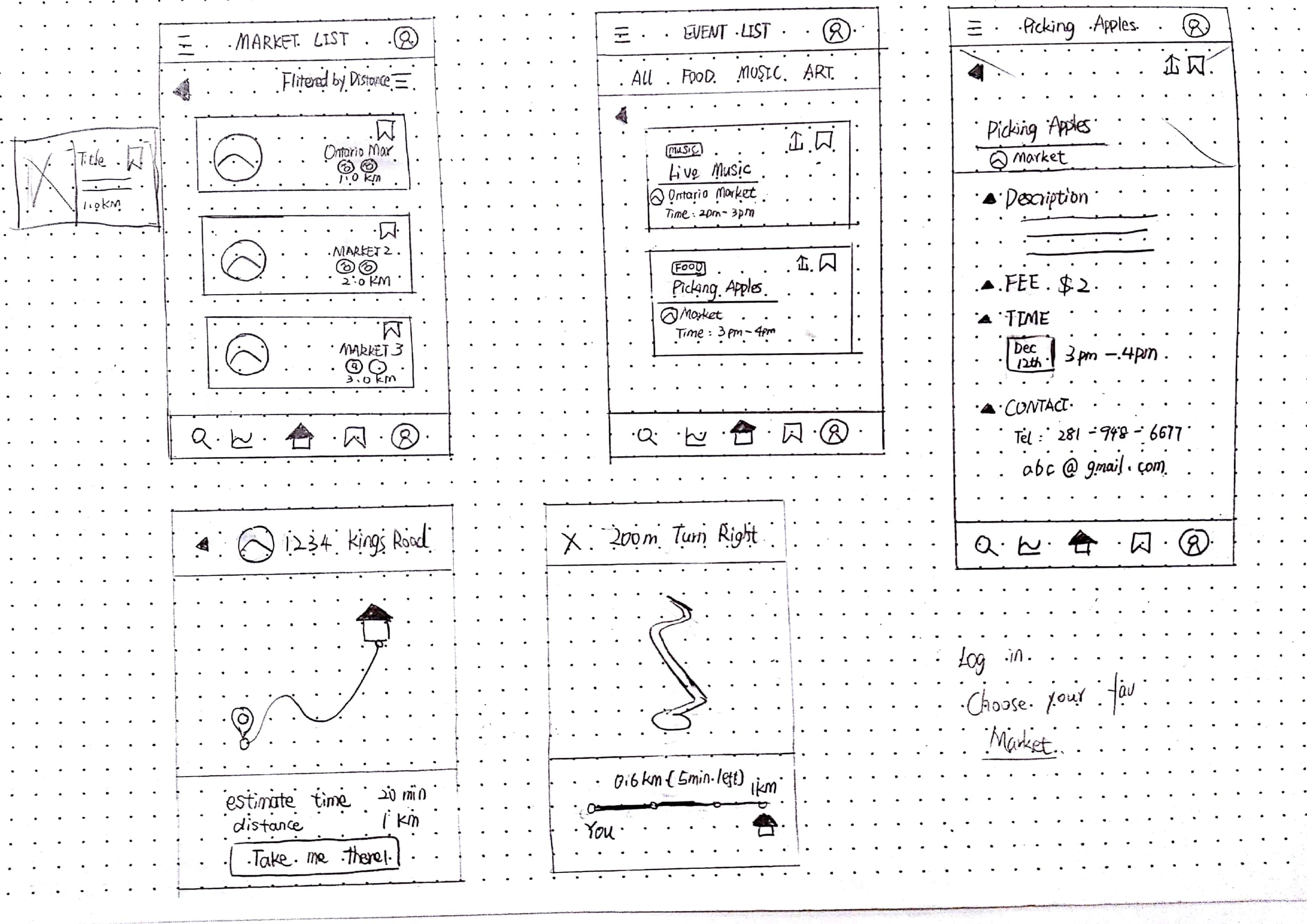 2. Don't force user to sign up or log in when they just download the app. Set some pro features to let user decide after they've been spending time on the app. For my design, I decided to add one bookmark feature. When user want to save their favourite market or event, a notification will pop up and suggest user to log in to get this pro feature.