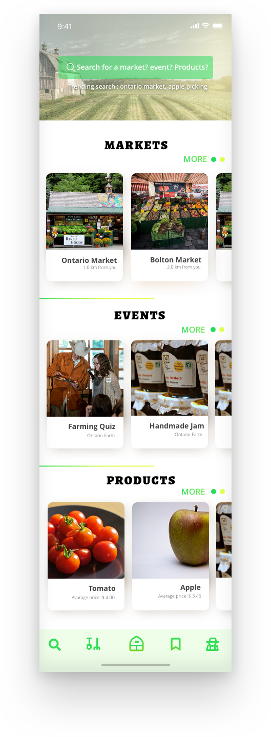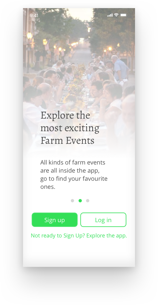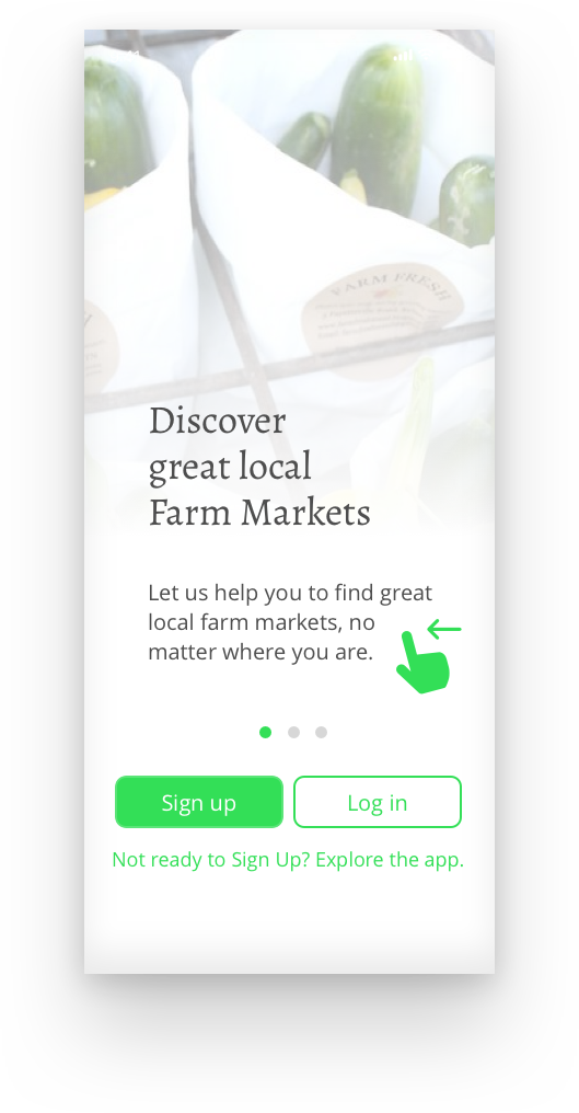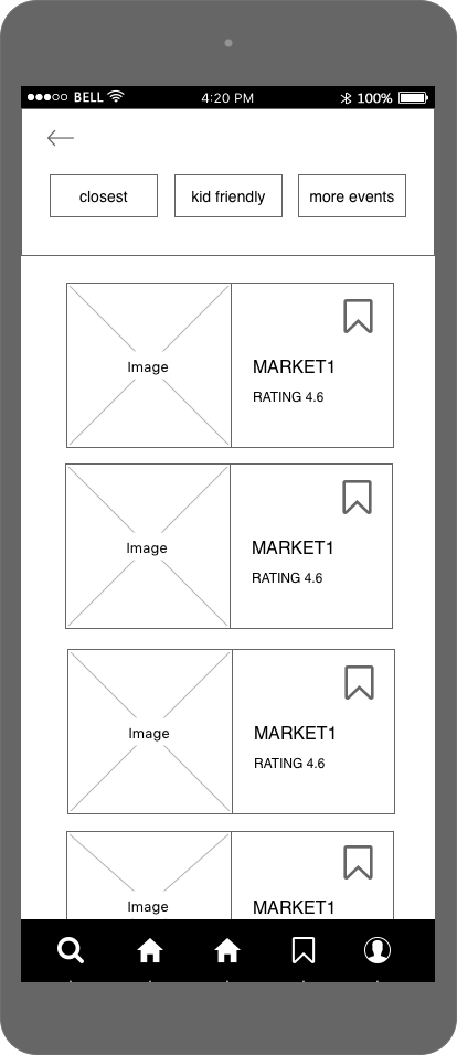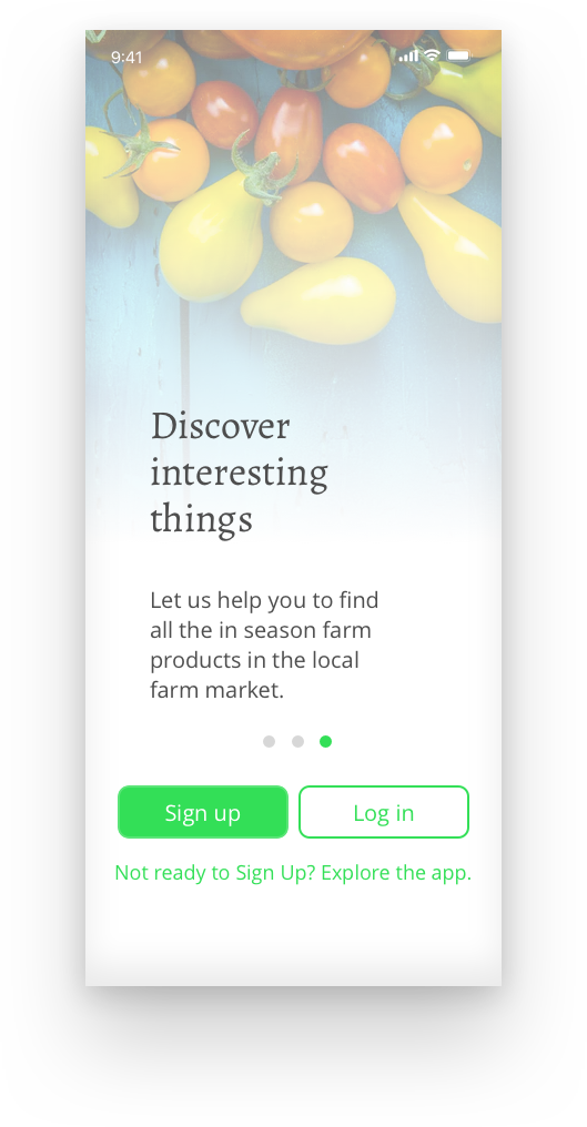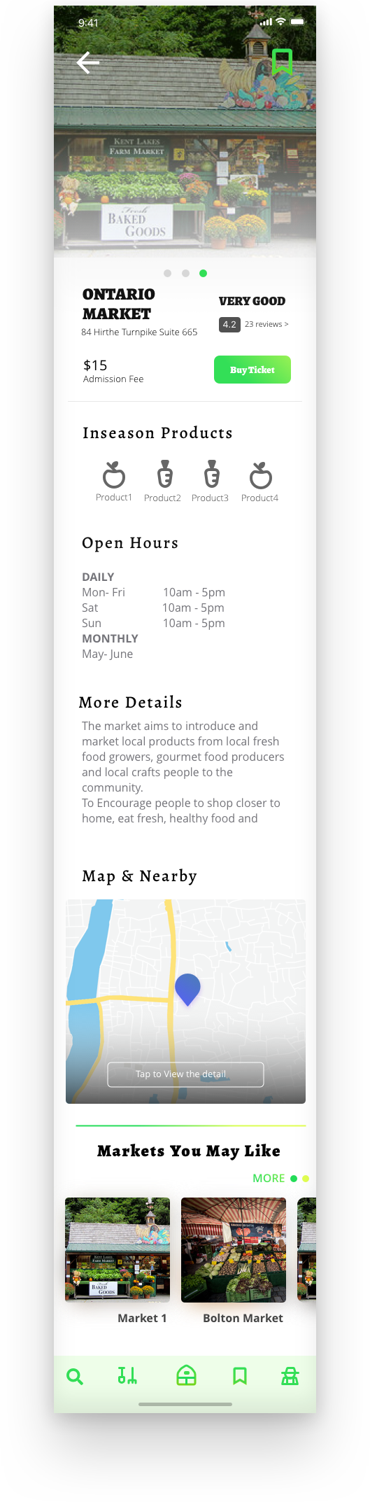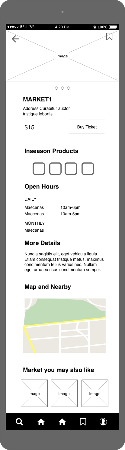 2. Don't force user to sign up or log in when they just download the app. Set some pro features to let user decide after they've been spending time on the app. For my design, I decided to add one bookmark feature. When user want to save their favourite market or event, a notification will pop up and suggest user to log in to get this pro feature.
