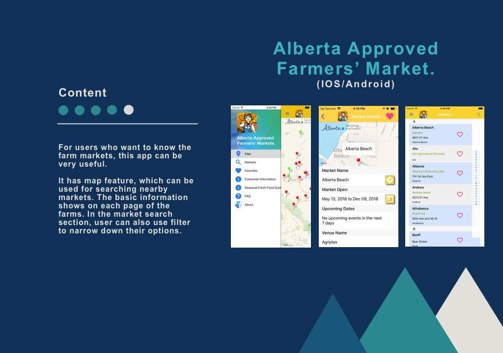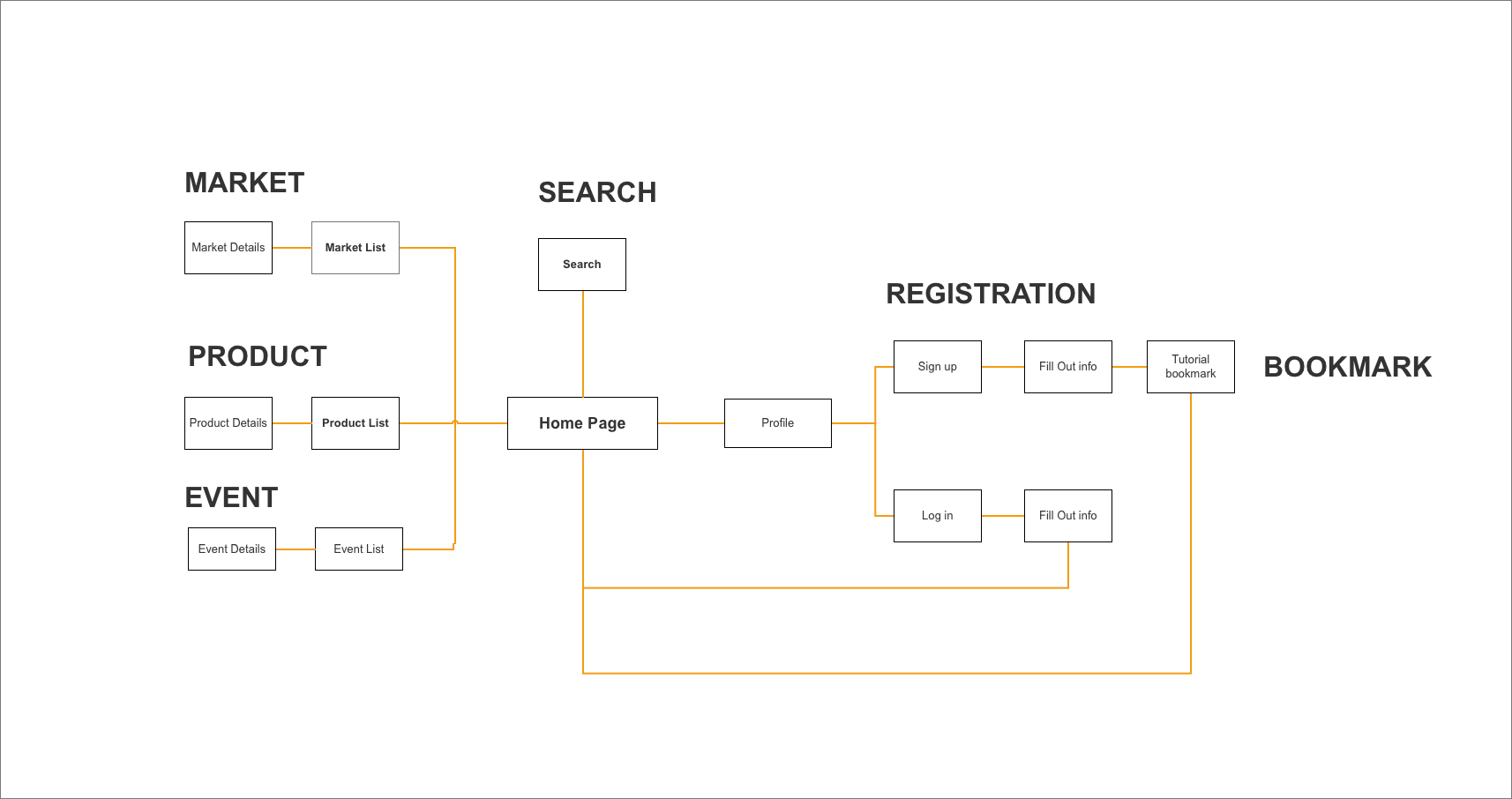 3. Categories features into 3 main parts: markets, events, and products. Use proper typography to make each paragraph clean.