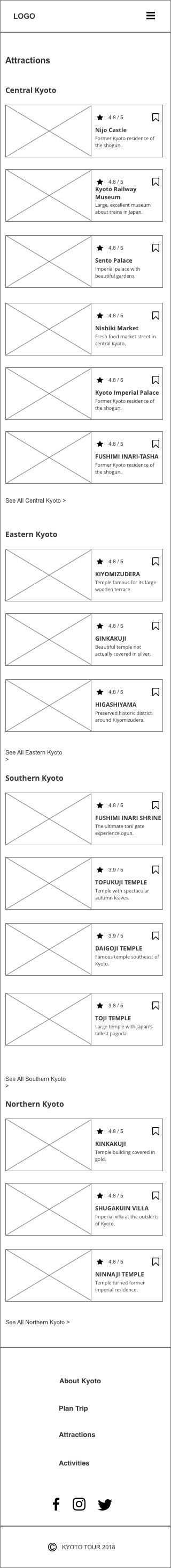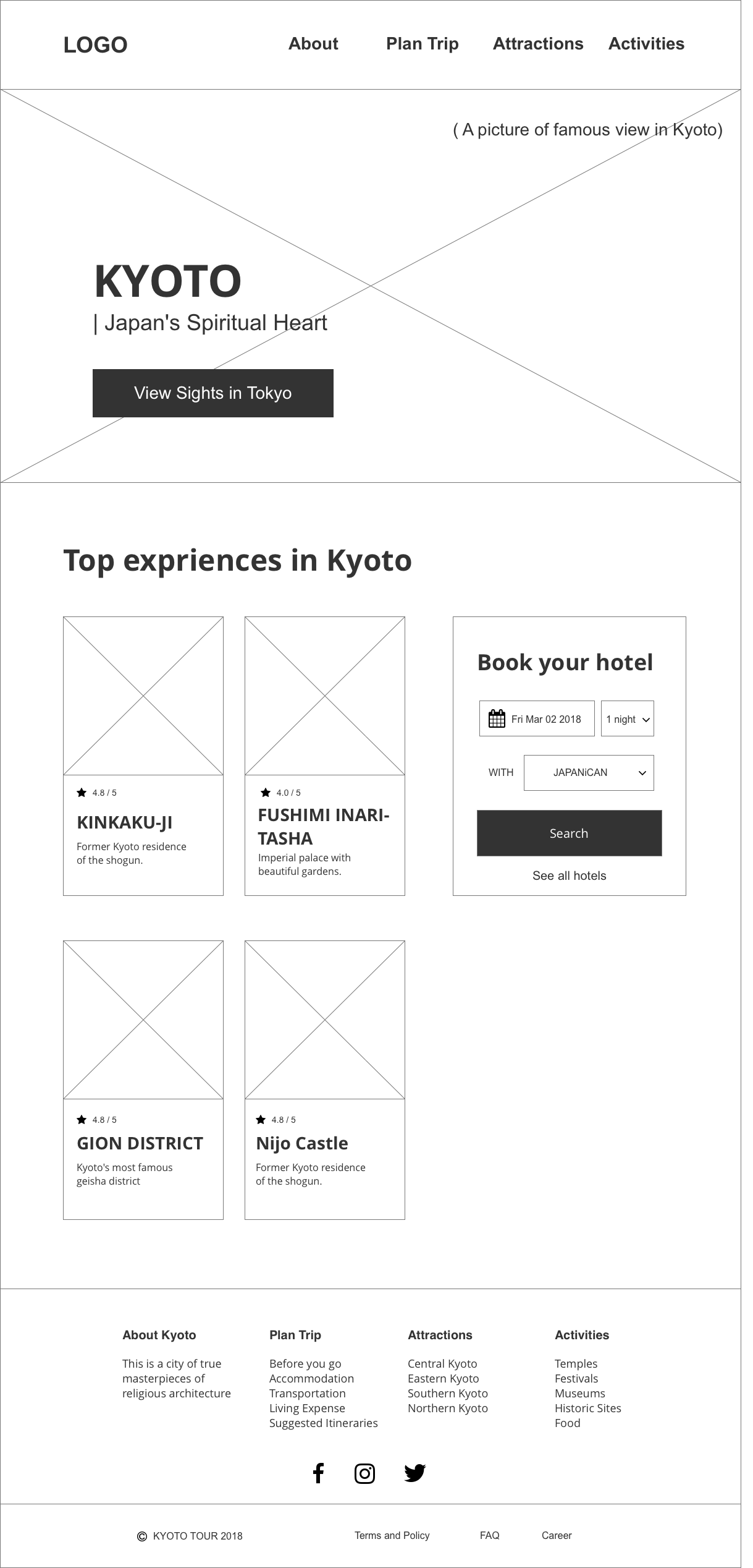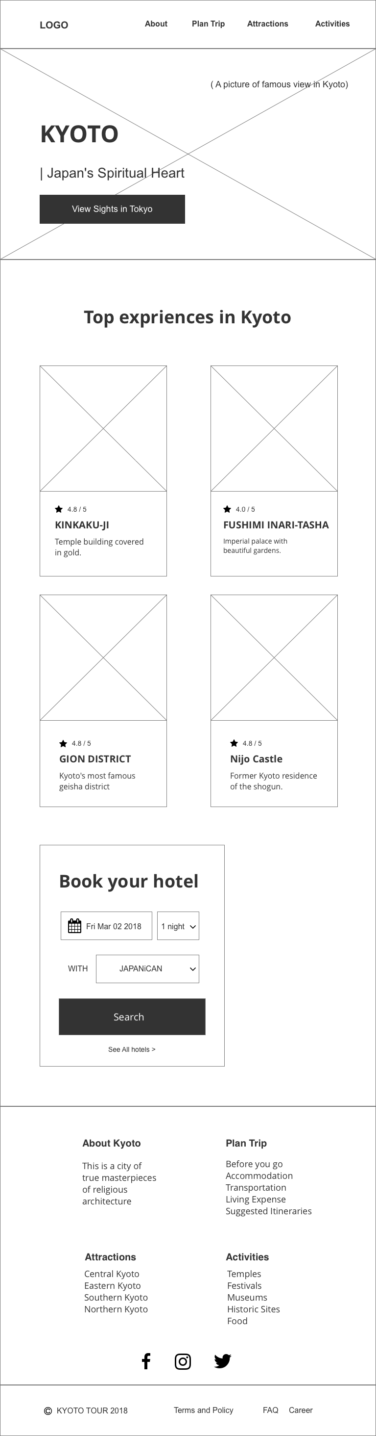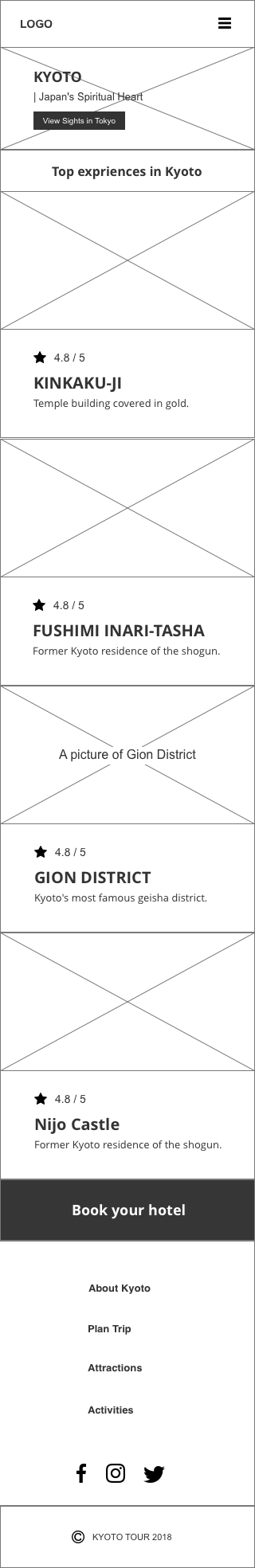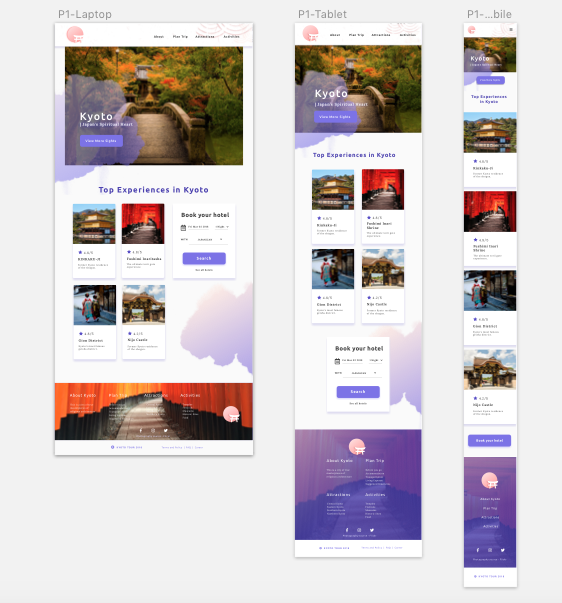 Kyoto Tour RESPONSIVE, HTML, CSS, FLEXBOX chevronLeft icon Previous Project Next Project chevronRight icon Launch Website I designed and coded the whole responsive page. For the coding part, I used flexbox to adjust different layout.