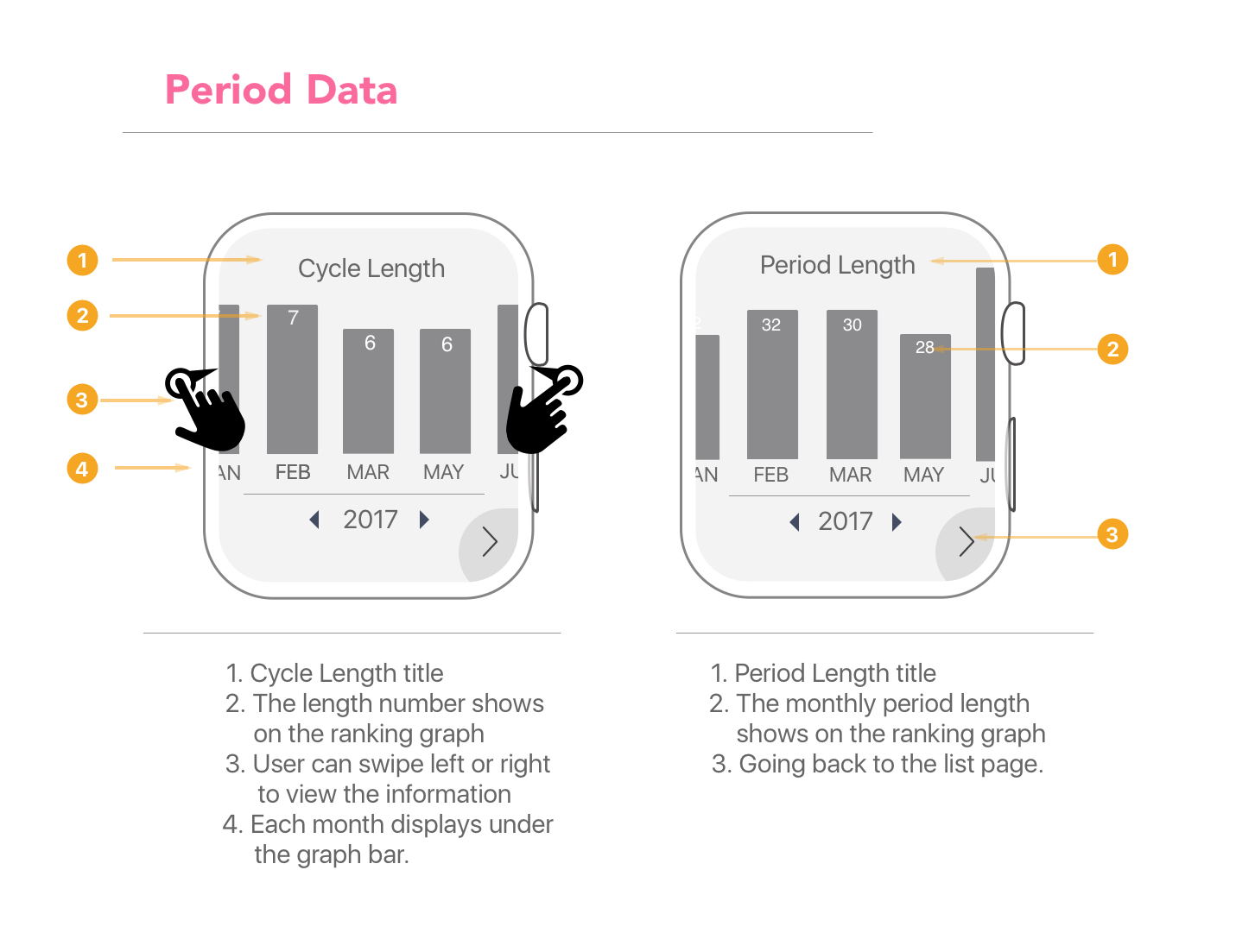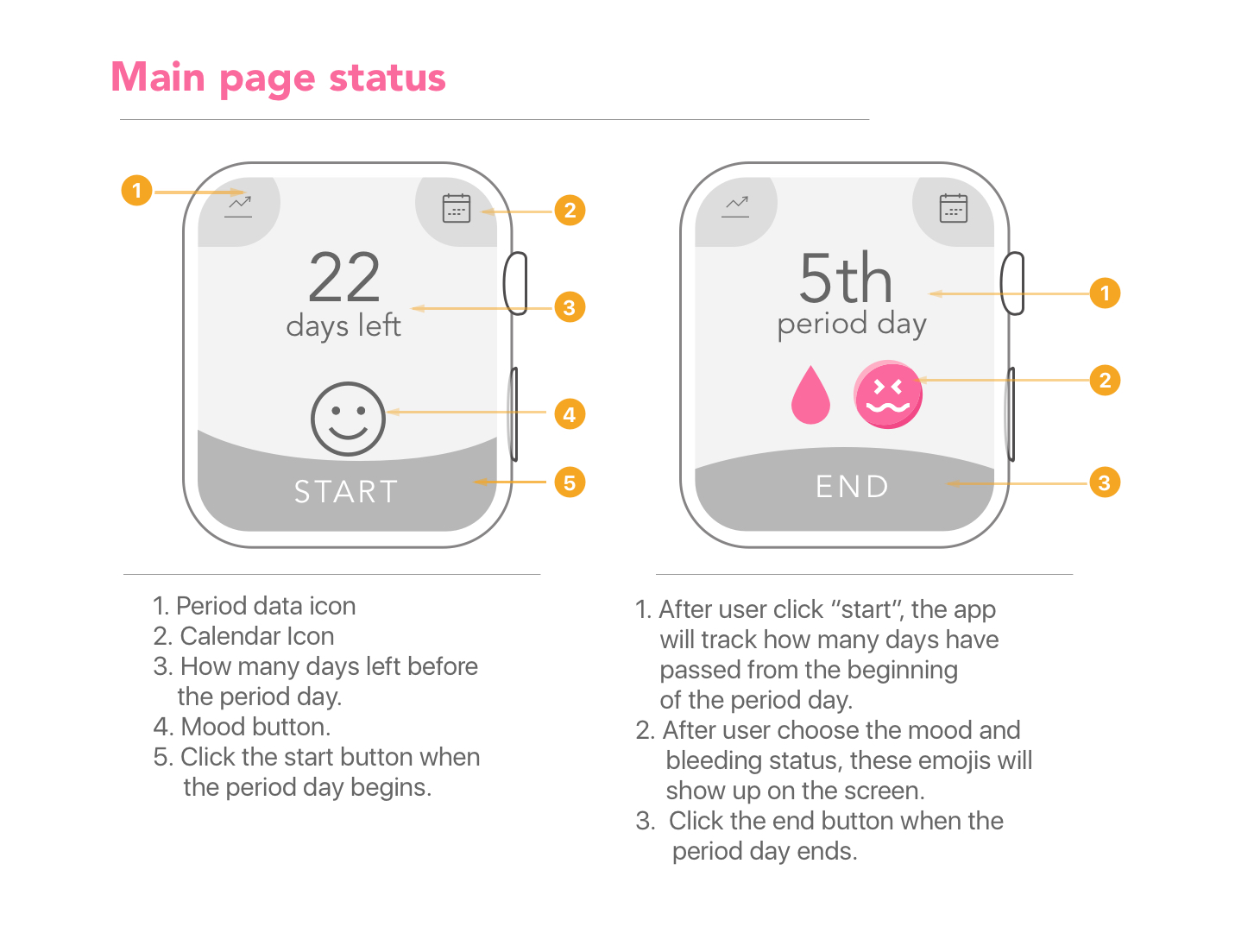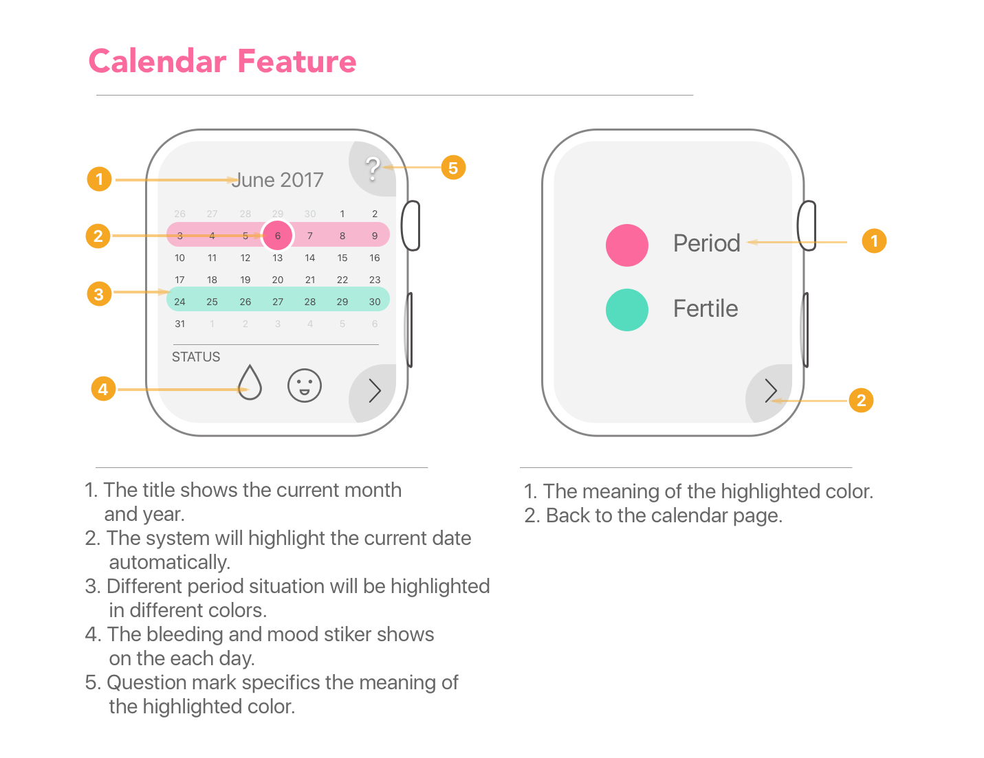 With this period tracker app, the female user can easily track their monthly period status. The period status feature, which includes bleeding and mood stickers, let user record their feelings. The period data feature, which includes cycle length and period length, shows the data of each month’s period day.